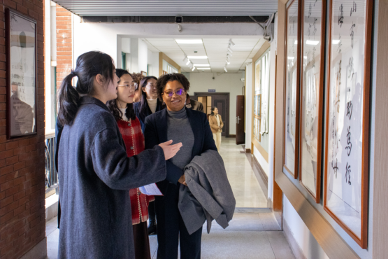 代表团一行首先来到师范文化馆,在学生讲解员引导下,了解我校师范教育文化和历史积淀,并参观师范生技能实训中心、书画作品及心理健康教育中心。尤里迪斯·阿吉亚尔校长一行不时驻足,交流中国特有的教育家精神的内涵、师范生培养模式创新等内容,并高度肯定师范文化馆在保存教育记忆、弘扬师道传统方面的重要作用。