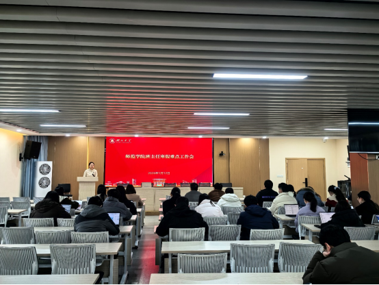 为加强学生寒假离校安全教育和管理,扎实做好寒假期间各项学生工作,学院于1月12日在310正言厅召开班主任寒假重点工作会议。学院党委副书记乔荃、全体辅导员和思政班主任参会,会议由辅导员韩鹏振主持。