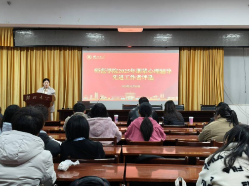 11月18日,师范学院2025年朋辈心理辅导先进工作者评选活动于师范学院223会议室顺利举行。学院辅导员刘亚辉、麦菲娜、王擎及全体心理委员参加,活动由王擎主持。