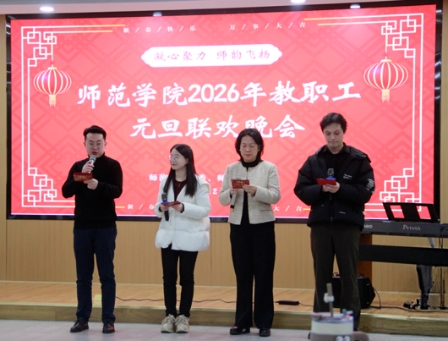 弦歌不辍辞旧岁,师韵飞扬启新程。12月26日晚,师范学院“凝心聚力 师韵飞扬”2026年教职工元旦联欢晚会在正言厅310室欢乐启幕,全院教职工及特邀嘉宾欢聚一堂,以自编自演的歌舞寄情、以热情洋溢的雅韵传声,在温馨热烈的氛围中共迎新年。
