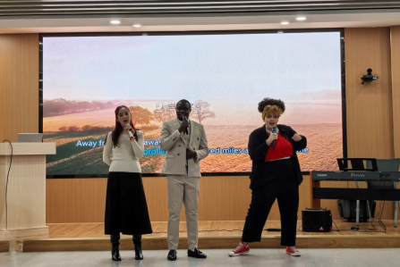 第三篇章里,《不要慌太阳下山有月光》的温暖合唱、小品《你好1982》的怀旧演绎,国际学生们英文歌《five hundred miles》的轻柔旋律,让现场温情满溢;第四篇章的韵律操、舞蹈串烧《跳哪算哪儿》,以动感节奏展现教职工的活力风貌。