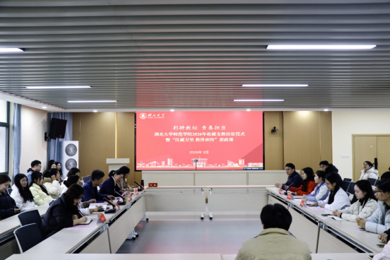 “支教有我,师范当先!”3月4日下午,铿锵誓言在师范学院310报告厅久久回荡。这不仅仅是一场赴藏支教出征仪式,更是一堂以青春奔赴为底色的特殊思政课。学院以“汉藏万里 教泽相传”为主题,分“初心·回望”“灯塔·守望”“承诺·展望”“未来·期望”四个篇章,将教育家精神培育与民族团结担当熔铸于这堂以赴藏支教为主题的师范生思政课。活动由院党委书记卢轶婷主持,校研究生工作部副部长邵阡、湖北大学附属中学校长王与雄、副院长赵映川、尹述飞及师生代表汇聚一堂,与远在西藏山南的校友跨越山海“云端”相聚,共同见证这场关于理想与传承的青春奔赴。